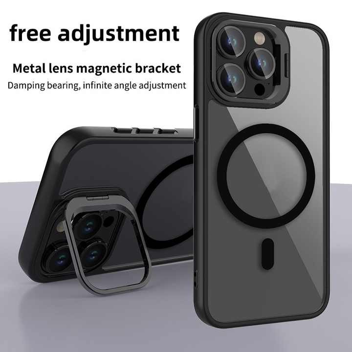 Magnetic iPhone 16 Pro Max with Holder Clear Phone Back Cover-Multi Color Edge Phone Case